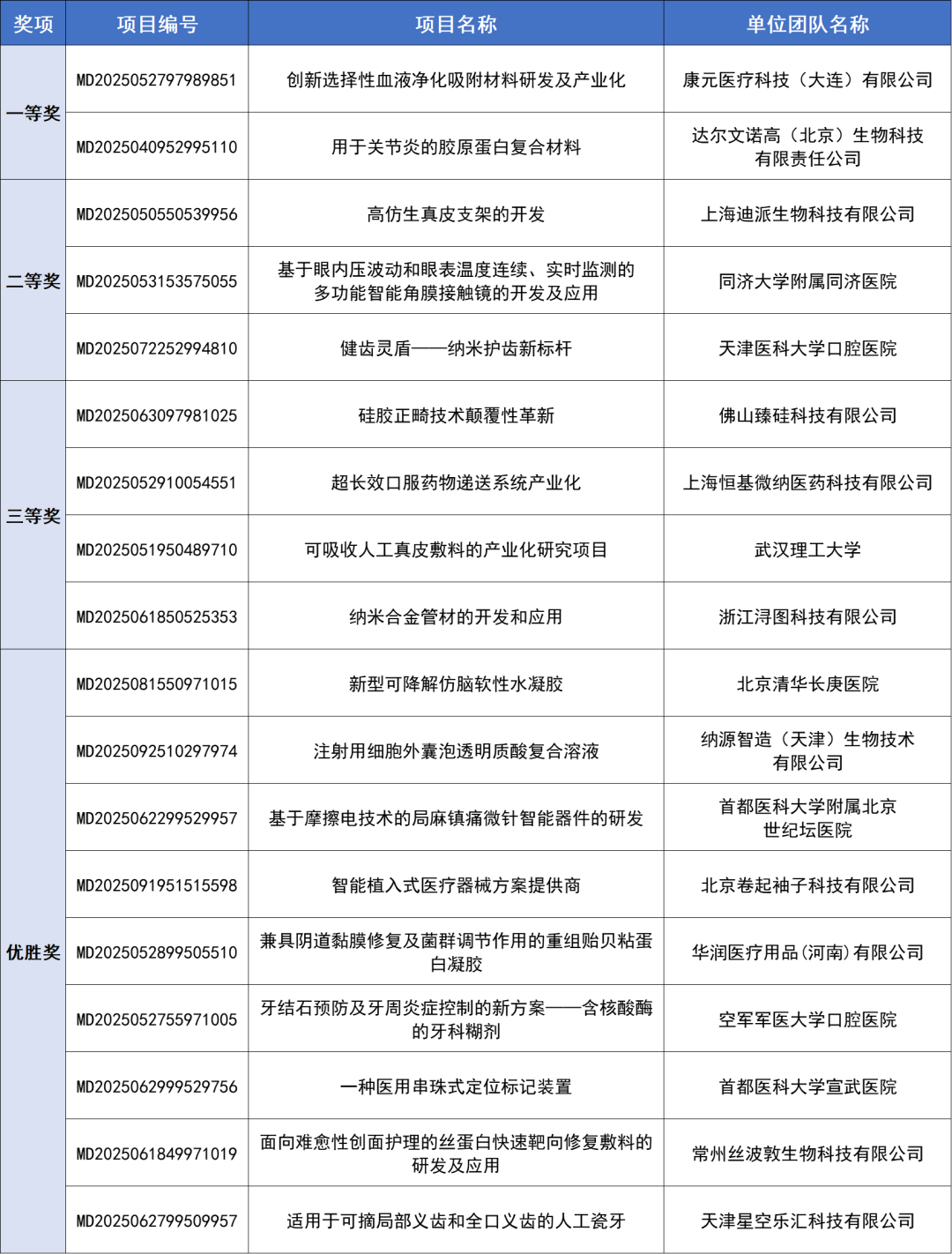 历经两天的激烈角逐,在天津东丽区进行的中国医疗器械创新网创业大赛五场核心赛事的结果已全部揭晓,具体获奖名单如下。